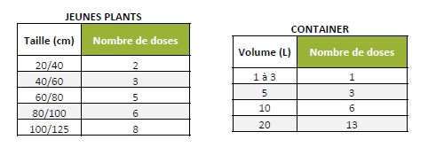 Appliquez ASTERIA®DOSE directement dans le trou de plantation. Nombre de dose en fonction du système racinaire (comme indiqué dans les tableaux ci-dessous).En gros, 1 dose = 1 pied de tomate/courgette/pétunia